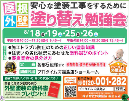 | お問い合わせ | 【プロタイムズ福島店 ㈱郡山塗装】 お問い合わせ番号:0120-001-282 WEBからのお問い合わせも可能です。 https://protimes-fukushima.com/contact/ |