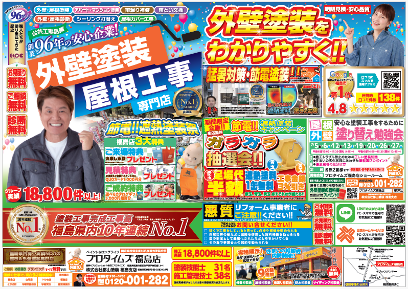 塗装をお考えの方はぜひ、プロタイムズ福島店へお立ち寄りください!!