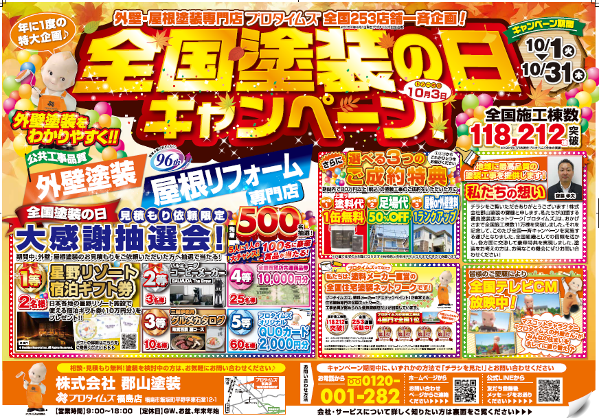 プロタイムズ全国塗装の日キャンペーン🎈【10/1~10/31開催】